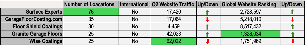 The total number of floor coating-only franchise organizations in North America remains in the low double digits.