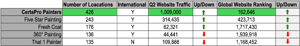 The number of painting franchise companies remains in the low double digits. New unit growth has been slow through Q2.